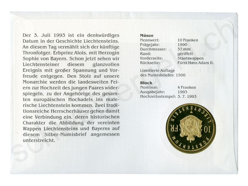 Lettre numismatique, 10 Franken, 1990
