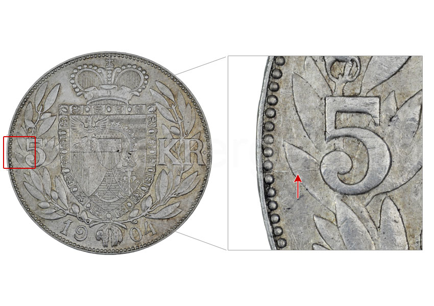 5 Kronen, rupture de poinçon