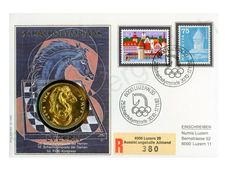 Lettre numismatique 1982, argent doré