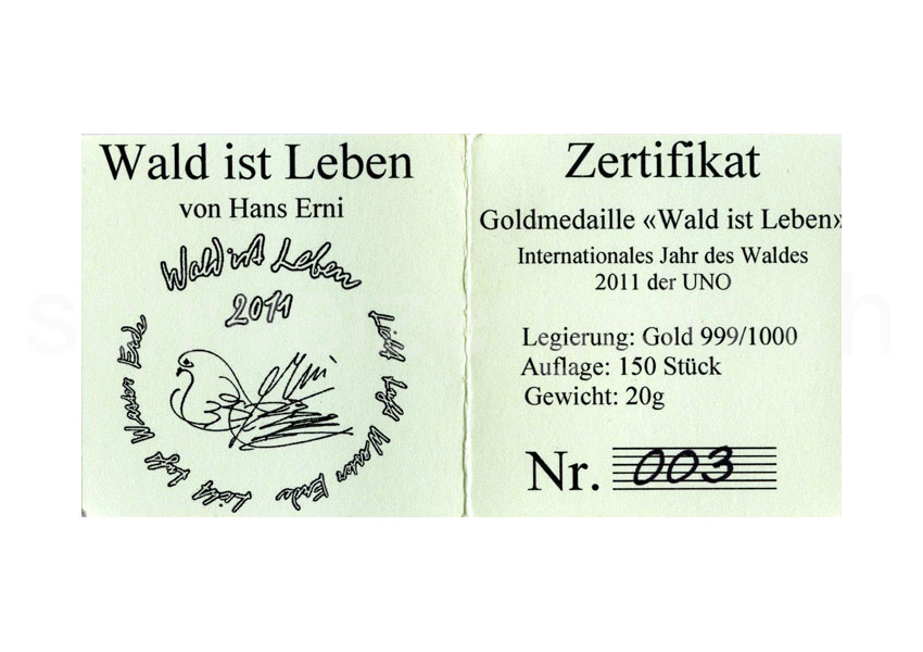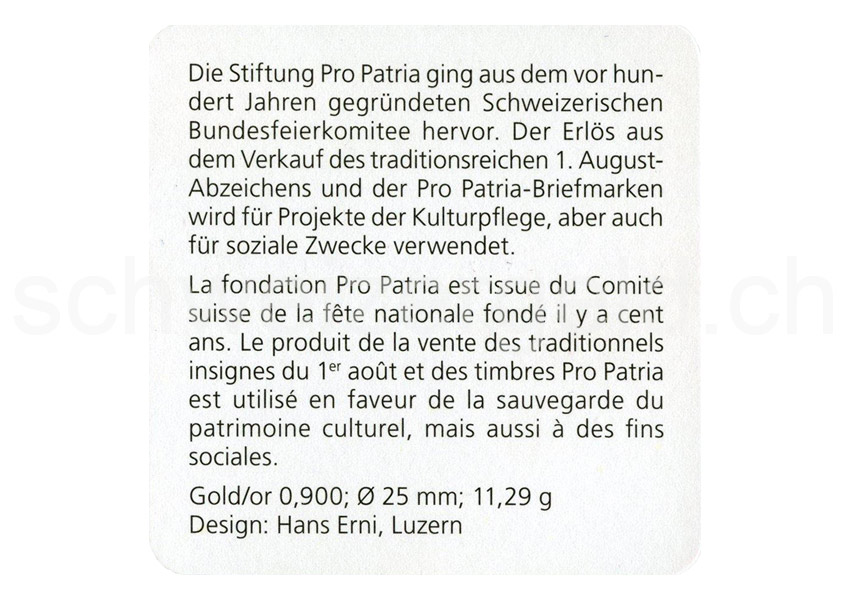 Médailles Hans Erni: Éditions en or